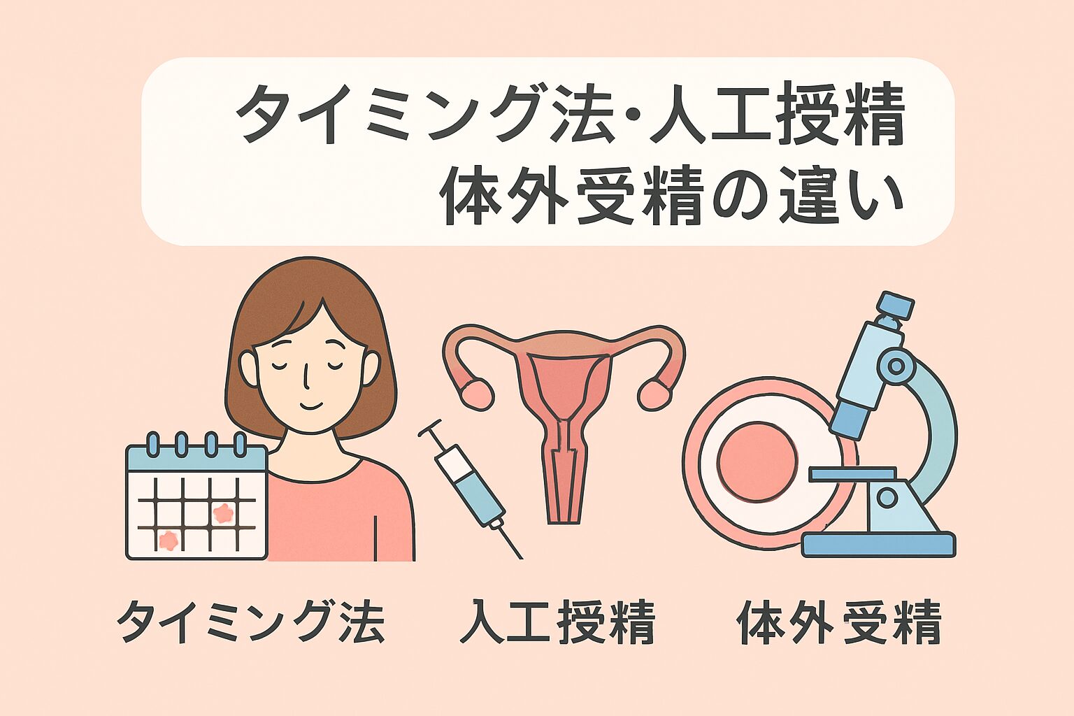 まずは、「タイミング法」「人工授精」「体外受精」の違いを理解し、
